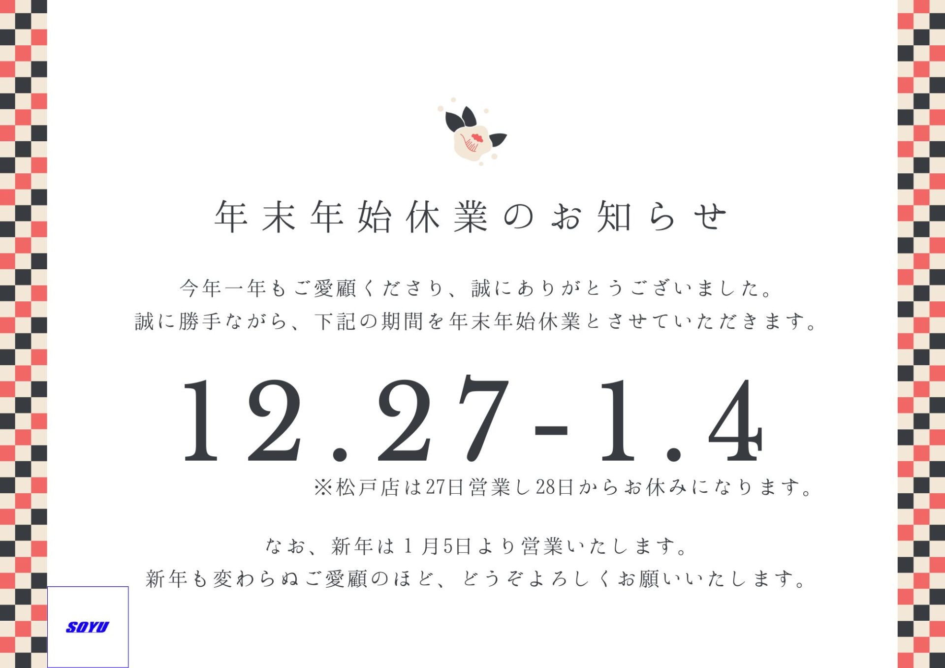 2024/12/26 【年末年始の営業のお知らせ】